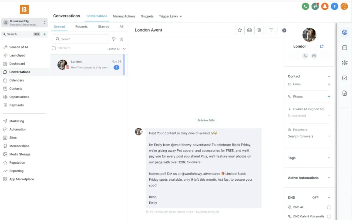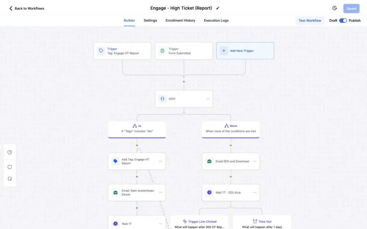 Sende automatisch Nachrichten an deine Leads, nutze Social Media DMs, E-Mails, LinkedIn, YouTube, FB Messenger und mehr!