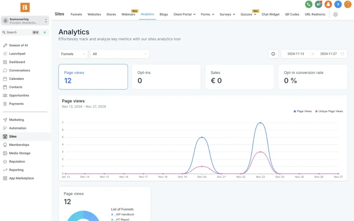 Erstelle unlimitierte Websites, Funnels und tracke den Erfolg deiner Verkaufsprozesse. Erstelle eine eigene Sales Pipeline.