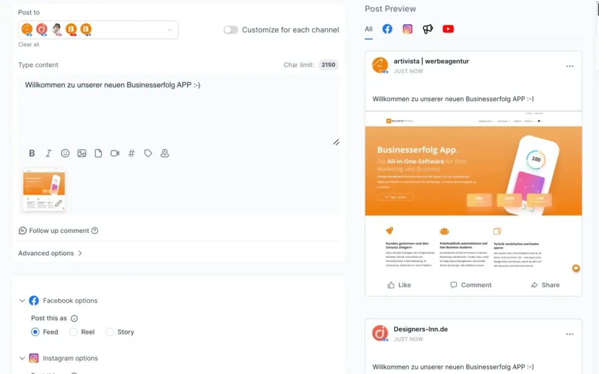 Plane und verwalte all deine Social Media-Aktivitäten direkt in deinem Dashboard.