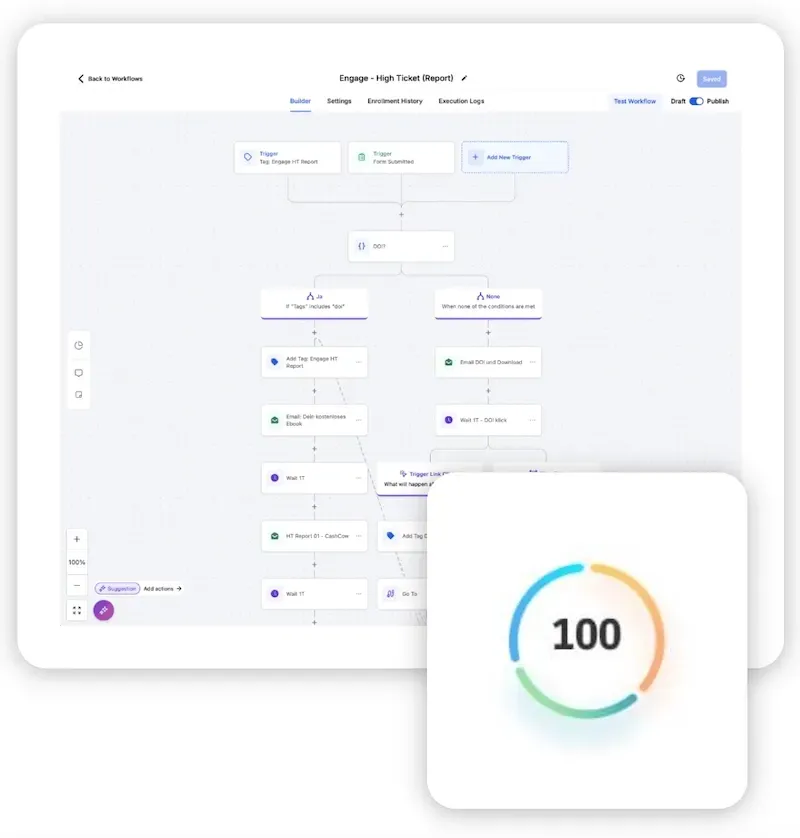 Kostenersparnis: Die App ist über uns 19 % preiswerter, da die Preise bereits die Mehrwertsteuer enthalten. Es sind alle Funktionen des GoHighLevel Starter Tarifs sind enthalten. Zusätzlich werden alle Funktionen des Unlimited Tarifs freigegeben, die über Sub-Accounts verfügbar sind. Wir bieten außerdem Unterstützung bei der Einrichtung des Systems in einem 1-zu-1-Meeting im Wert von 300 Euro.